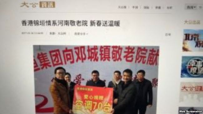 香港大公网上仍能搜出相关报道:2017年1月14日,商水县委书记马卫东(左三)出席涉嫌巨额非法集资女商人杨瑞(左二)赞助的慈善捐赠活动。