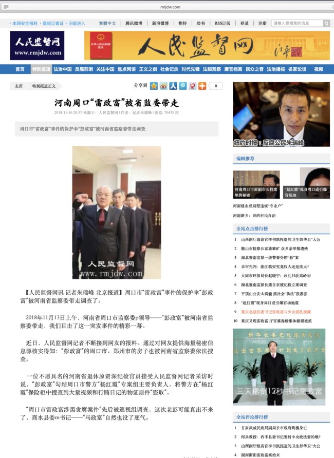 大白新闻发现,直到上月下旬,彭如祥落马的消息才坐实,并成为周口下属各县纪检监察系统引以为戒的“反面典型”。