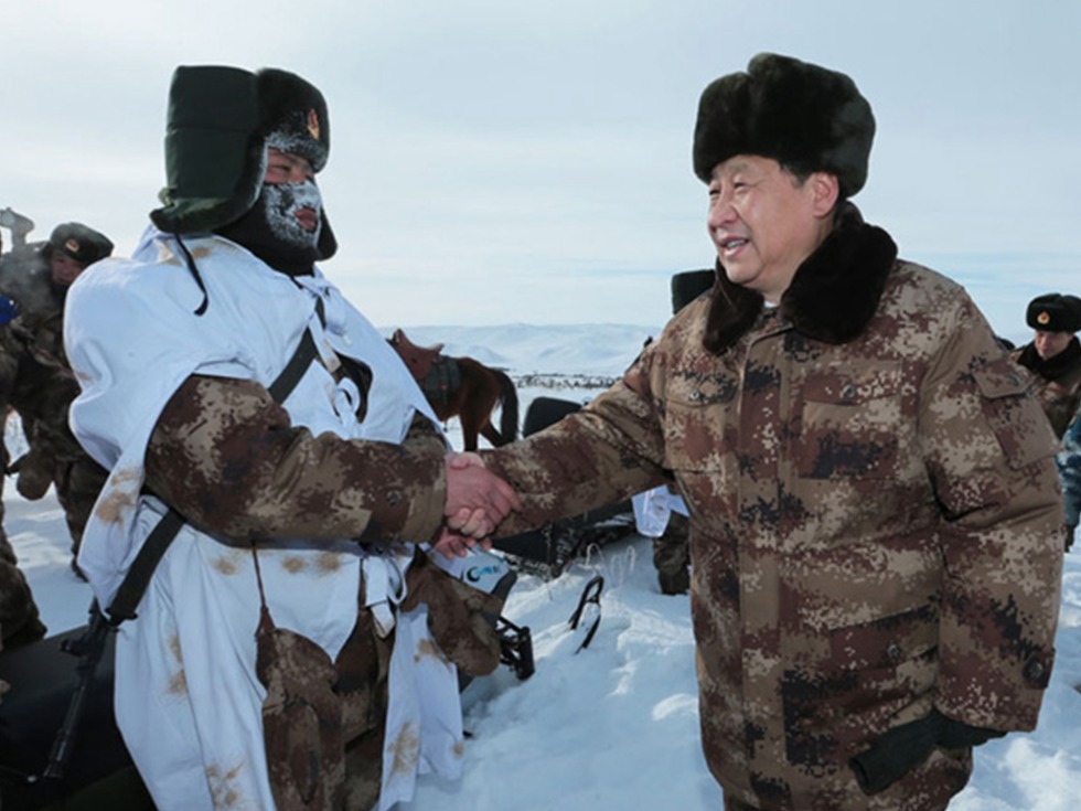 2014年1月26日,马年春节前,习近平冒着零下30多度的严寒,来到位于祖国边疆的内蒙古阿尔山,慰问在边防线上巡逻执勤的官兵。