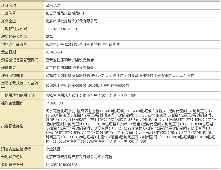北京市住房和城乡建设委员会预售商品房住宅项目公示信息显示,北京潮云地产为溪水花园项目的开发商。溪水花园项目位于密云区溪翁庄镇溪翁庄村。