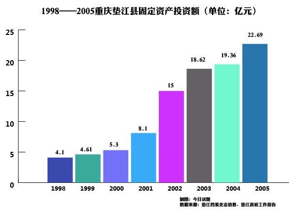 雷政富的这些手段,其实很多地方政府都在用。而雷走后,在整个大重庆政策下,垫江的固定资产投资更是年年飞升,可是还是雷政富当年的骨架”让人看得更为直观。