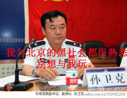 为阻止周泽律师接受朱瑞峰的委托,廊坊市公安局的副局长孙卫克竟然亲自打电话对周泽律师进行威胁、恐吓,准确报出周泽律师的家庭住址和车牌号,说自己与北京的黑社会很熟,还说廊坊离北京很近,想做点什么很容易。还通过周泽律师所在事务所的主任及原来在法制日报的同事,转达对周泽律师的威胁、恐吓,以阻止周泽律师接受朱瑞峰的委托。廊坊公安孙卫克副局长玩的哪一出呢?杨金柱虽熟读《孙子兵法》和《三十六计》,现在还真有点看不懂孙卫克副局长用了孙子的什么兵法。