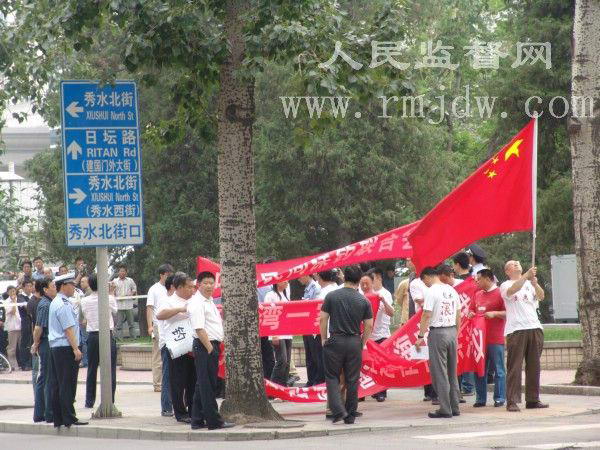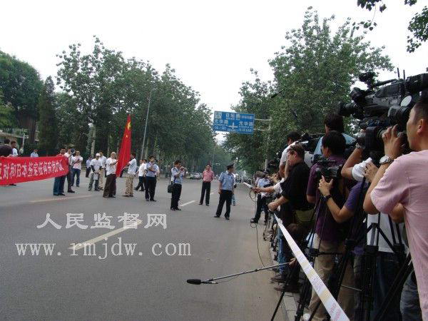 人民监督网讯 (记者 朱瑞峰)2008年6月18日下午,中国15名公民在日本使馆前和平示威,抗议日本舰艇撞沉中国台湾渔船。整个过程持续了半个小时。
