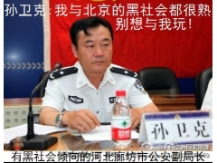 公安部领导: 我是北京市问天律师事务所律师周泽现向你们反映河北省廊坊市公安局副局长孙卫克对我进行威胁、恐吓及与黑社会有染的问题。