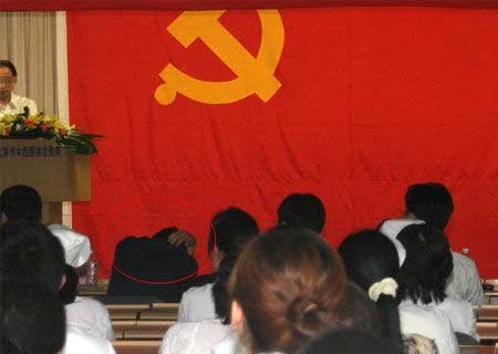 在帖子中,发帖者共张贴了10张照片,标题中称是在某医院大会上所拍摄的照片,片中的主要人物是一位被发帖者叫做“吴醉醉”的院长,但他的脸部打上了马赛克。与吴院长同排而坐的其他领导的名牌上,也全都打上了马赛克。