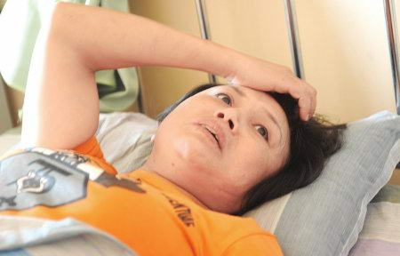 被打伤的文明劝导员彭兰燕在医院接受治疗