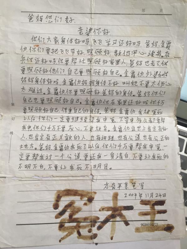 方春平第二次被判处死刑后,他认为自己可能不久就要死了,希望家人坚持为他申诉。澎湃新闻记者方远图