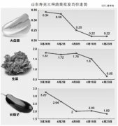 单位:元/公斤 数据来源:中国寿光蔬菜网 制图:蔡华伟 1角钱1斤的芹菜,2分钱1斤的大白菜最近,部分蔬菜价格暴跌,引发人们对菜农和菜价的热切关注。从最高10多元1斤的高价时代