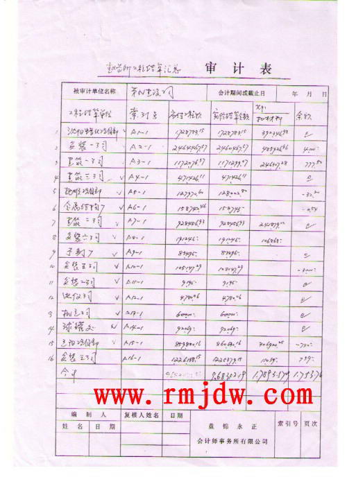 所有审计材料一看就知道完全是2003年九化公司自查且弄虚作假对付检察院的复印件,少有的几张新复印也是九化从沈阳发的传真件。已经被刘文祥审计底稿编号的九化交给检察院时全有的决算书却被全部撕了下来。撕后的材料上仍留有很多的碎纸片。所有审计材料远没有九化当年交给检察院的材料完整。所有审计资料帐目残缺不全,九化基层单位没有一个赵令恩的往来明细帐是完整的。刘文祥已经编号的所有决算书也基本上都没有。原本就是赵令恩的工程款九化汇给了他人,因为没有结算书事后刘文祥就说这不是老赵的。有五六百万赵令恩往来帐上有的工程款刘文祥审计上却没有。九化建二公司从九五年开始帐上以经表明付出了三百多万赵令恩的工程款,但刘文祥却说这些款,他问建二会计王文忠了,王文忠说没付,那肯定就是没付。并说你不懂帐,这些款都是预提。(付建二帐目)还有相当一部分工程款根本就看不到付那去了,问刘会计,他就瞎拼,拼不了就说在九化公司财务部。作为有多年审计经验的刘文祥,不但和九化合伙弄虚作假,而且将所有审计资料和审计底稿全部出卖给我们,不用说依法审计和职业道德了,就是做人最起码的道德他都没有。