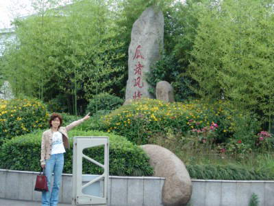 本图:绍兴县公安局原干部范菊花向记者指认徐焕明的豪宅位置