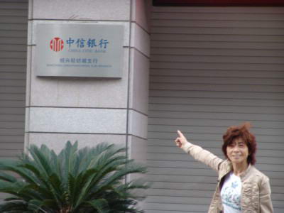 本图:绍兴县公安局原干部范菊花向记者指认揽储银行