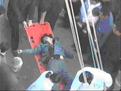 图为村民在拆迁现场晕厥被抬出急救。本网记者潘书培、陆宏晓摄影