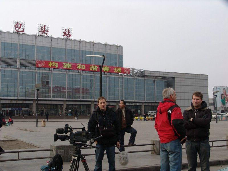 本图:德国国家电视一台纪录片《媒体中国》摄制组在包钢尾矿坝拍摄