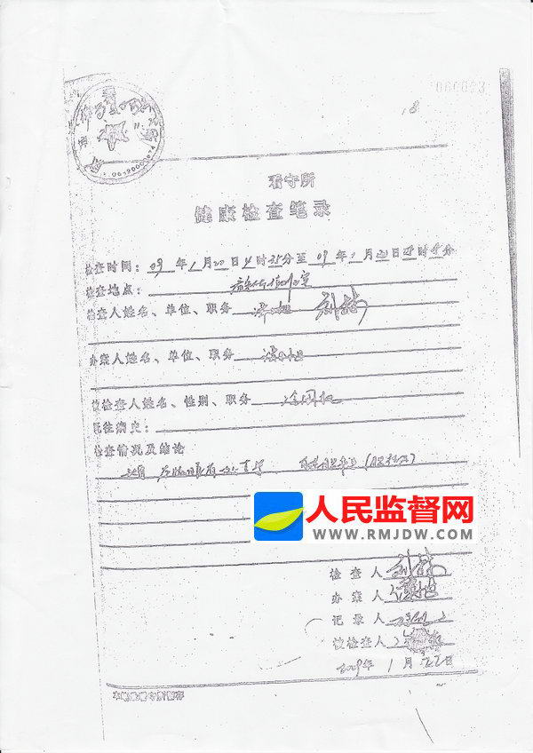 图:丹东市司法机关伪造的看守所健康检查笔录