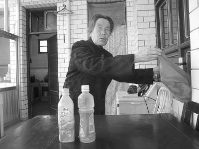 4月12日,76岁的何凤仙老人向记者展示打奶的瓶子。这次平凉牛奶中毒事件中,他们一家六口“中招”。本报记者  张鹏摄