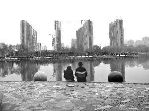 4月23日,太原龙潭湖公园,周边林立着新建的高楼,有的直接建在原来的绿地上。本报记者 涂重航 摄