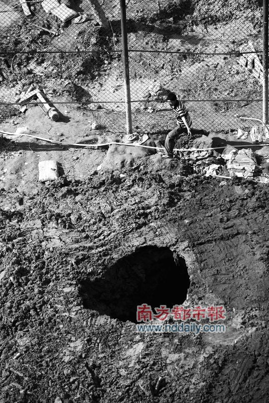 ●5月4日,原先塌陷处附近又塌出10平方米左右的大坑。施工方称,天降暴雨及事发地并未充分加固所致。