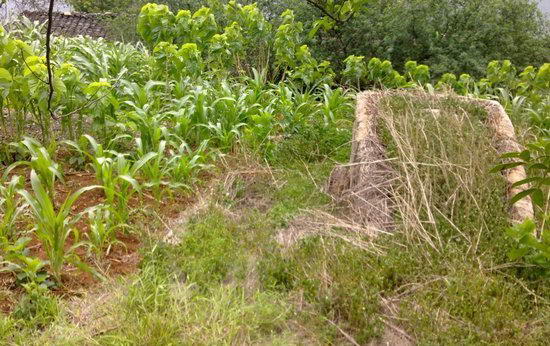 王家飞的坟墓。王家飞被埋葬在李昌奎家的庄稼地里。