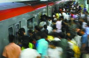 四惠站的八通线换乘处,每天高峰期间,蜂拥而上涌进车厢是常见的情景。资料图片 韩萌