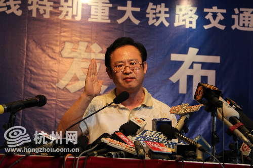 铁道部政治宣传部部长、新闻发言人王勇平向当时在事故列车上的记者致歉