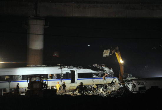 7月25日20时11分,D3115次动车通过“7·23”甬温线特别重大铁路交通事故路段。新华社记者 邢广利 摄