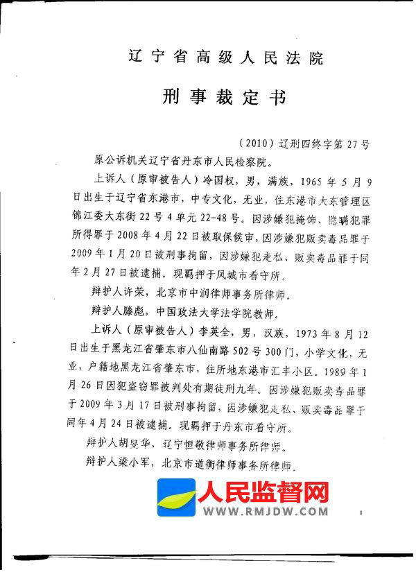 Tags:冷国权 李英全 一审 死刑案 辽宁省高院 发回重审