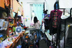 当日,记者来到北大校园内30号男生公寓楼。一进楼道便闻到一股馊臭味。推开一间宿舍,凌乱地摆着两张木板床,一台电风扇在床头转,宿舍内无空调、电视等。在31号女生公寓楼,楼道阴暗潮湿,几十件衣服晾在楼道。一间宿舍内有4张上下铺。由于没有衣柜等收纳空间,床下塞满衣服。一名女生说,宿舍太挤,衣物只能塞在床下或放在桌子上,换季的衣服则寄回家。多位同学表示,国内学生宿舍多为4人间,一年收费700多元到1000多元,没空调、电视。一些国内学生则表示,如果宿舍条件明显改善了,就算收费提高,也愿意接受。