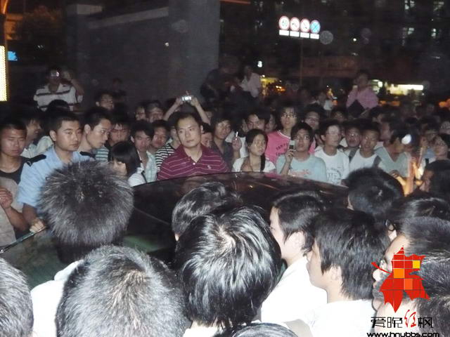 我班来了好多同学,我在前面负责拍照,我的嗓子实在是哑的厉害,很疼很疼,后来人数估计有几千人,我也喊不出声了,专心拍照.拍了车牌,牛比号"湘AA8168" 车内饰-凯迪拉克标志的方向盘,还有现场的一些人山人海的照片,我们的邻居师大的女同学们也在楼上帮我们喊.在此表示感谢,谢谢你们的支持!