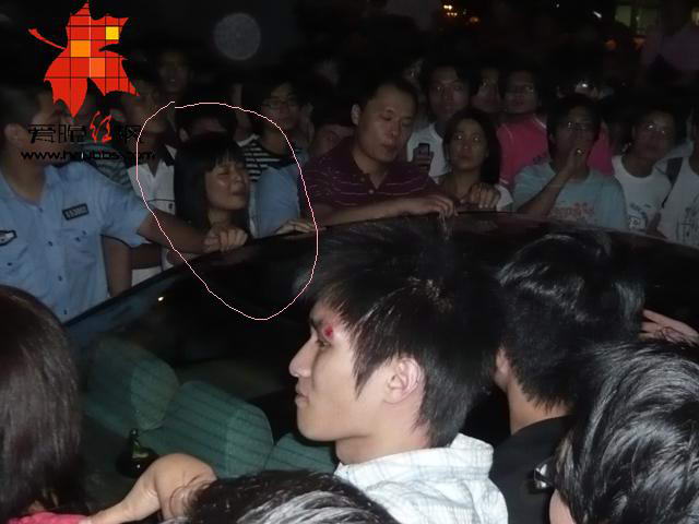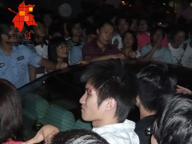 回到现场,同学们情绪失控,开始砸车,我班的好多同学都踢了那车,揣的好过瘾.有个同学拿块砖头上来砸后备箱,被学生会的给拦了,刚好在我旁边,我们几个同学把学生会的同学骂了一顿.那车主见事不好,上去真的跪了,不过就2秒钟,那个镜头我没拍到,实在可惜.然后深深鞠躬后,然后以为被几个校警护着从车顶下来,附近的同学拳打脚踢那畜生,最后还是被警察带走了.留下书记处理后面的事,他根本控制不了局面,大家的情绪一阵接一阵的高涨,踢车,砸玻璃,后来学生会的人把车围起来,不让打车,还有学生会的头被打破了,没人同情他.事情的最后,来了好多警察,把车开走了.
