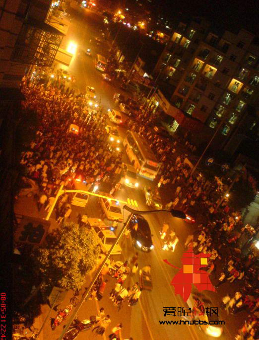 晚上从德智园回天马,一看天马大门关了,门口全是人,估计200多人,知道出事了,我翻大门进来,看到停了辆车,问了下别的同学怎么回事,得知事情是这样的:一社会青年开辆凯迪拉克,在天马门口撞了湖大工商管理学院的一个男学生,车主下车暴踢那学生,对那学生说:"打你又怎么样,把我车牌记下来啊."然后他上车,看那学生躺在地上拦他车,车主又下车继续踢那学生,动作相当野蛮,态度相当蛮横.后来学生越来越多,不让他走,要求他道歉,他也不做声,后来人更多了,大家高呼让他道歉,他软了,跳上车对大家说:"我向被打的同学道歉,向湖大的全体同学道歉."但是态度相当不诚恳.我们大家高呼:"跪下,跪下..........."他就是站着不动.一会他女友(长的相当丑)发脾气了,大喊,让我们静下来,大家哪会听她的,全骂她,叫她闭嘴.后来再也没看到他女友.一会来了些校警,把那车主围起来,估计是怕我们打他.我就站在校警身后.学生们大呼"道歉道歉....."