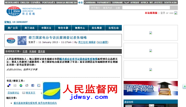 Tags:荷兰国家电台专访 反腐调查记者朱瑞峰