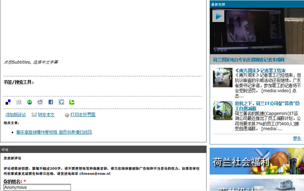 荷兰在线视频报道链接(翻墙)http://www.rnw.nl/chinese/video/874896