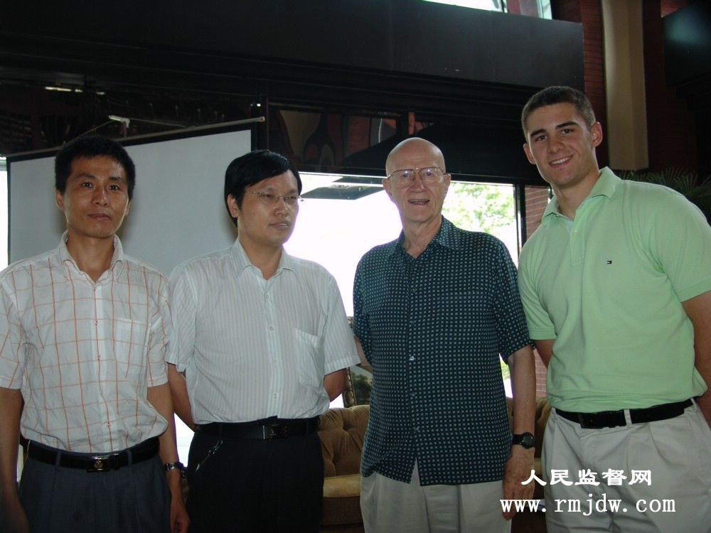本图:北京理工大学胡星斗教授(左二)与记者朱瑞峰(左一)、美国驻日本前武官洽克*切泊曼先生(右二)、美国西典军校亨利克斯*德瑞克同学(右一)