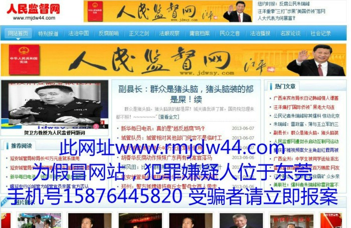 上图:假冒人民监督网网站截图一