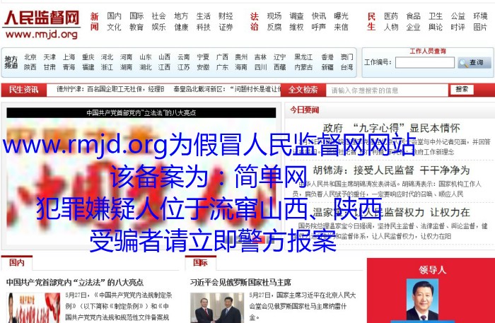 近期发现有多家网站假冒人民监督网,其人员流窜山西、广东、陕西等地,以人民监督网的名义从事所谓的“维权”欺诈活动。